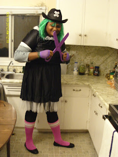 This is me in my Holloween costume. My friends and I had dressed up for the Rocky Horror Picture Show that was taking place at the Roxboro in downtown Montreal. I just put any thing that I can find at the dollar store together. My friend Lana went as a Sexy Beatlejuice and her boyfriend as Jason.