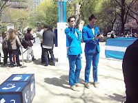 I skipped work for this day. I ran to the park with my pillow, bunny ears ( that got knocked off the first few hits) and camera ready to give a couple of blows. "I hate you, I hate you, I hate you for simply wearing that shirt, and I hate you for being taller to me." I told somebody as a swung my pillow at my victim as he bopped me on the head with his. The crowd wasn't massive, the mob was more in the hundreds, around the water fountain that's located in the middle of the park where the NYPD is cautionly watching the chaos in the middle of the empty fountain. The day was crazy. People from all around came to the park with thier pillows to give hits and get hits return. Although all was fun and games there was a time when the crowd became questionably dangerous when people were being shoved and pushed, elbows and hands were being thrown all around making me more cautious of where I stand to hit, the feathers that was flying everywhere from the pillows that was getting caught in my throat, and pillows flying everywhere, of course. However the day was fun, and yes, I had gotten a load off my mind. There were people who were brave enough to dress up in costume like; The Green Lantern, a hot dog, a Spartan, in pajamas, as Batman and Superman, and as the American flag man (that costume was completely weird.). There were battles like the one between a Bruce Lee wanna be and a guy sporting a Jeremey Lin shirt, a guy wearing a Five Brothers pizza shirt vs the hot dog costumed guy and a cute girl in with a pink bookbag vs a girl in a purple shirt chicken fight, and many others of the sort. Photographers such as myself taking risks to bring out thier camers to capture such a moment on cameras and Iphones. I had to watch myself of flying pillows when I was taking my shots although the fighters were careful themselves not to hit anyone with a camera or unarmed. Little kids partook in the fun themselves, and there was a kid in a wheelchair that was having blast.Young and old and people from whatever had a fun day swinging and throwing pillows, jumping into piles of pillows and letting day go by not really caring of affending anybody. The fight lasted a good three hours, enough time to bopp people off and tire out. That was it for me. I went back to my place sore, feathered and smiling from such a crazy day.